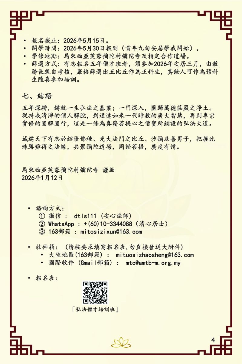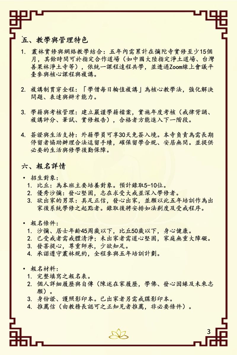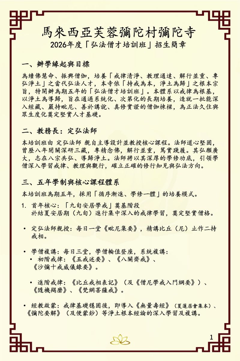 2026年度培訓班 - 弘法僧才培訓班(五年制)